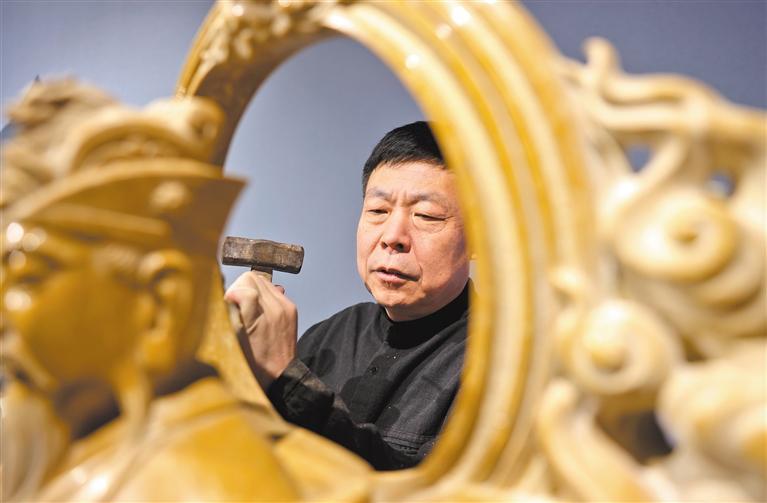 中国工艺美术大师、河北翰鼎雕塑集团首席技师高英坡自建了一所艺术馆,不定期讲授雕刻技艺、开展创作培训。