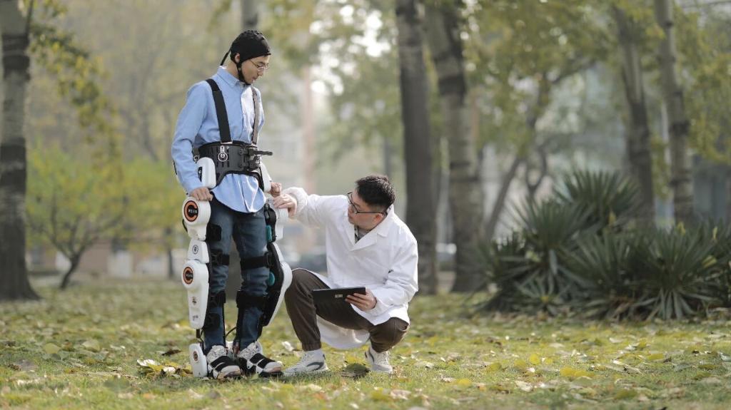 56岁的张先生因突发脑卒中身体右侧功能严重受损,不能行走也无法自主进食。经过8次脑机接口“神工—灵犀指”上肢训练和6次“神工—神甲”下肢外骨骼装置训练,现如今张先生的上肢活动能力明显增强,可以自己拿着勺子吃饭。“仿佛自己变成了机器人,脑子一想,脚真的就迈出去了。”这是张先生第一次穿戴上外骨骼装置时的感受。